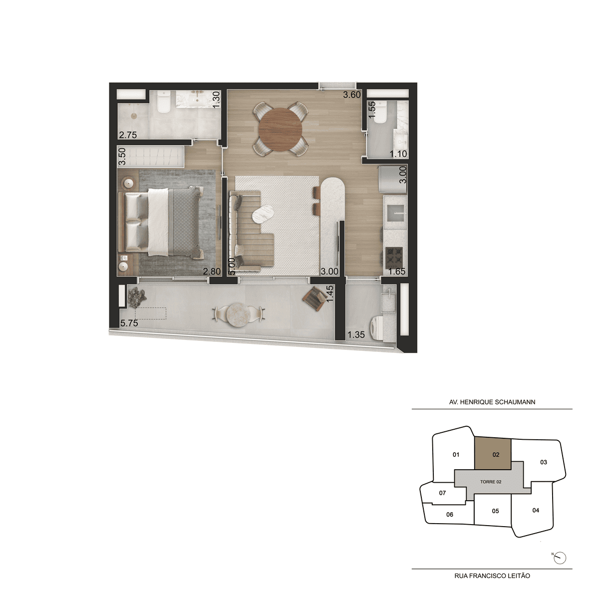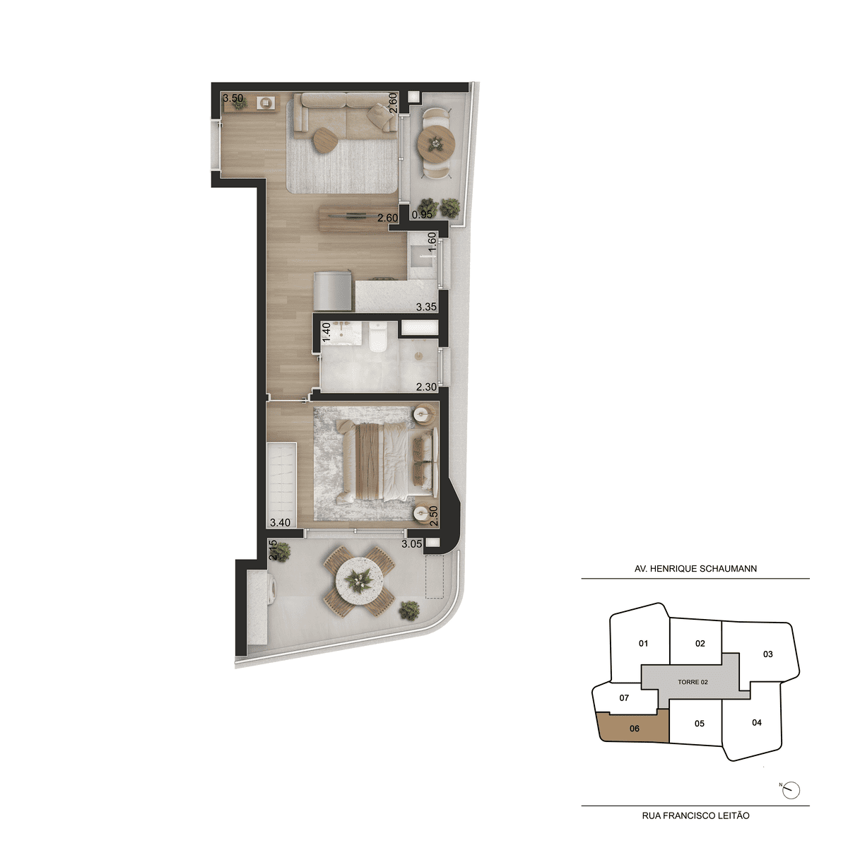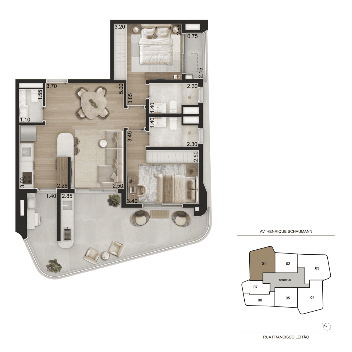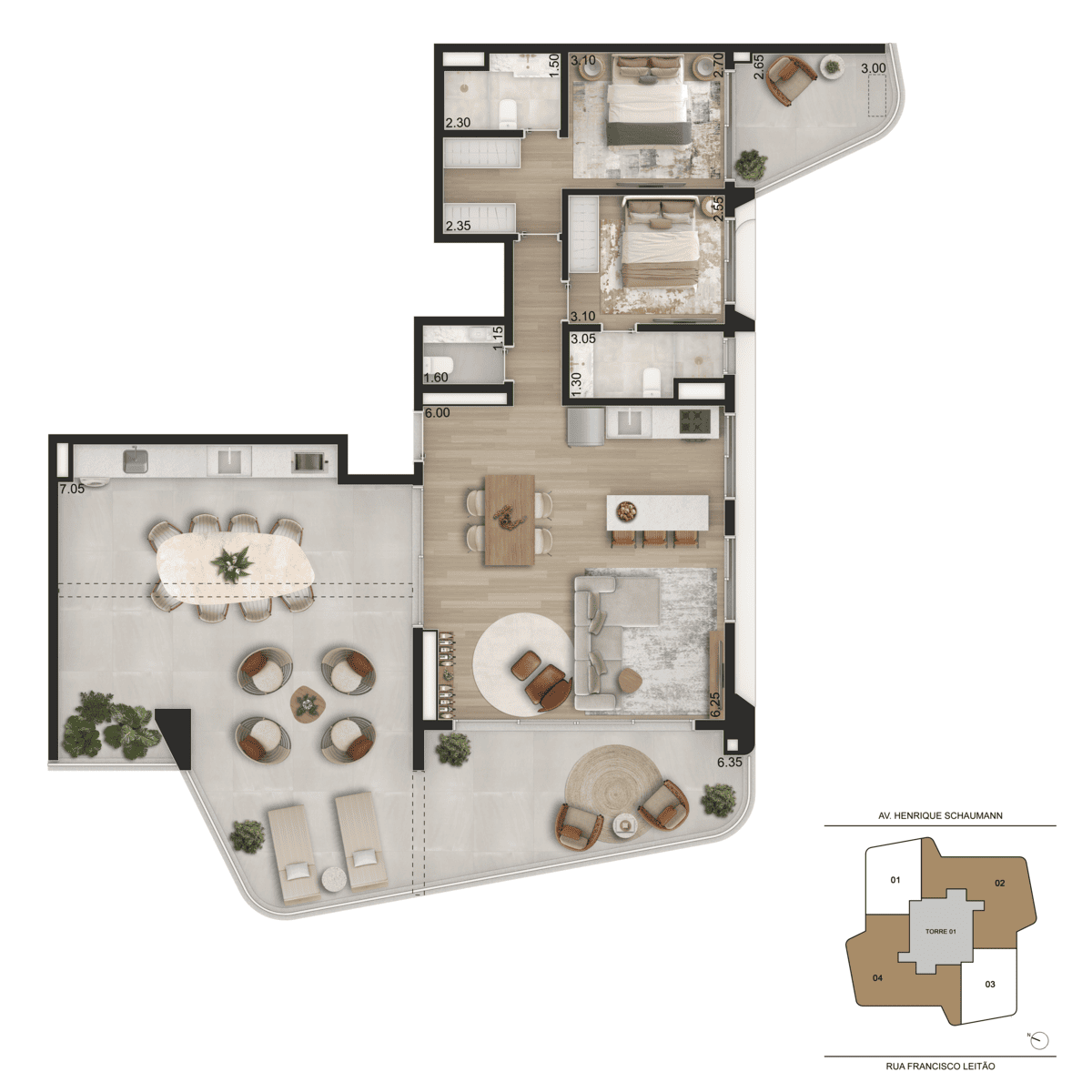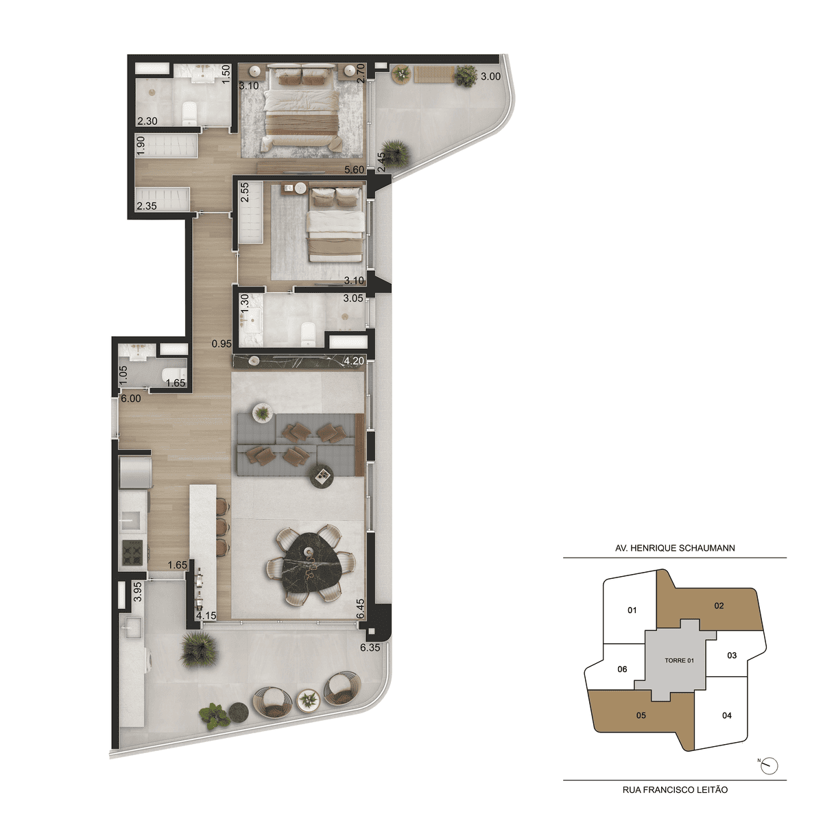 Apartamentos de 44 a 104m², Studios a 1 dorm, 2 suítes.