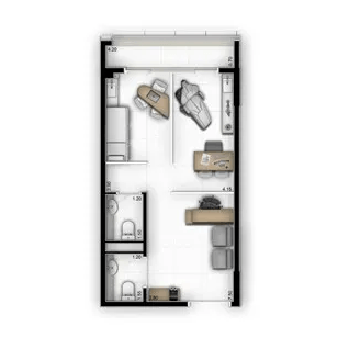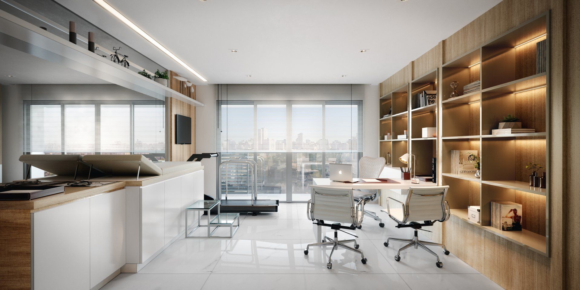 Dois banheiros por consultório e banheiros com acessibilidade nas áreas comuns, em todos os pavimentos.