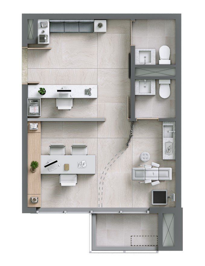 2 pontos de água adicionais na área de atendimento dos consultórios.