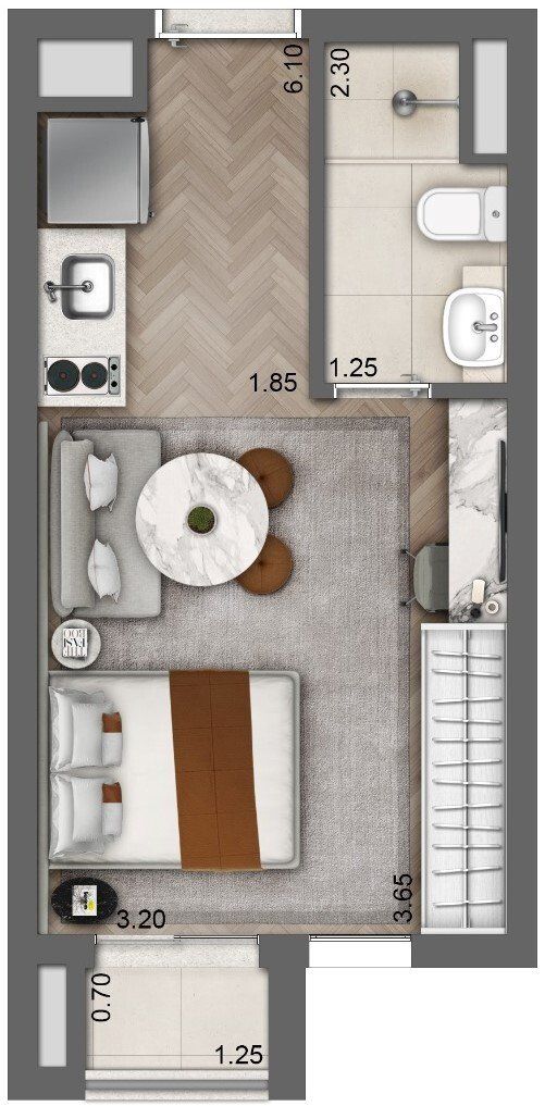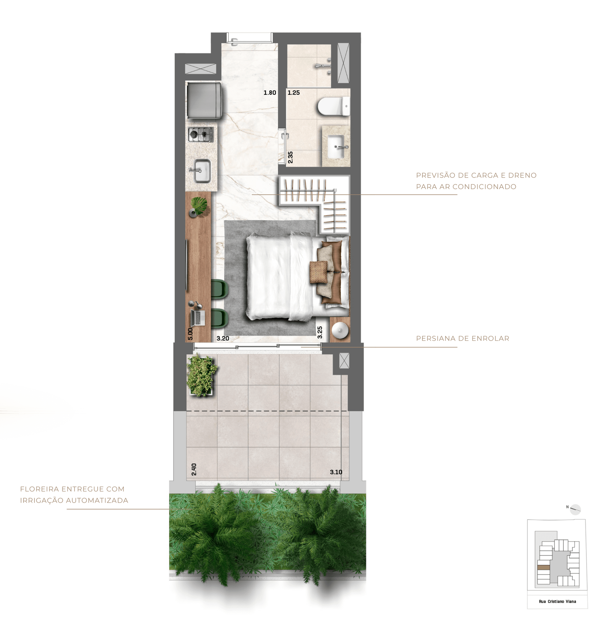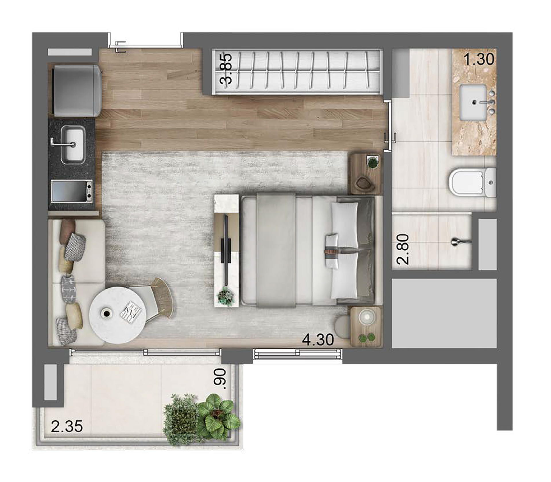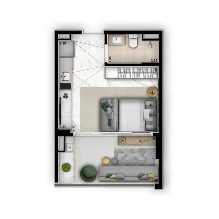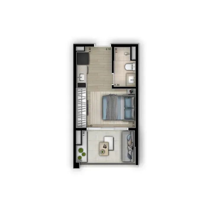 Studios para morar ou investir em uma região com alta demanda de locação.