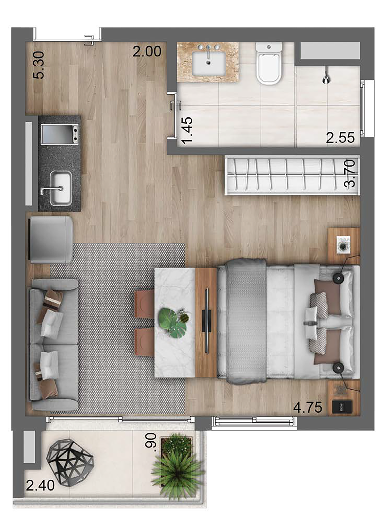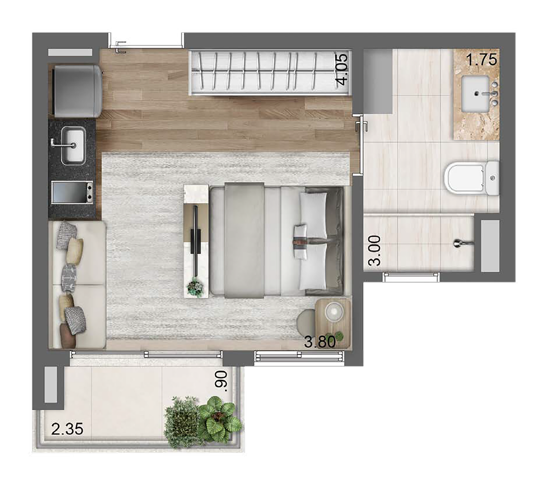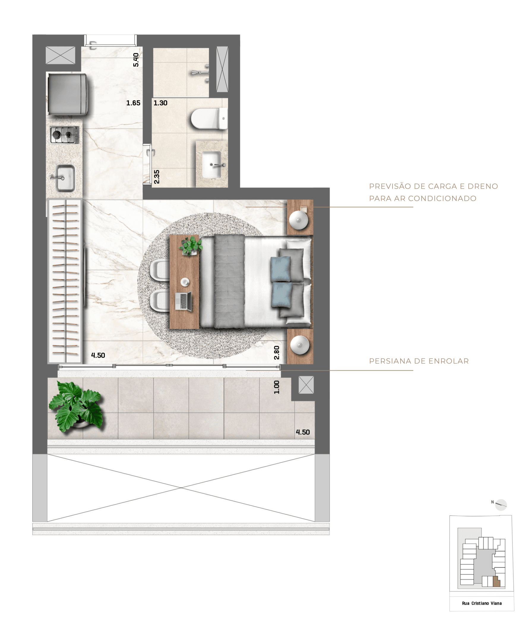 Studios para morar ou investir em uma região com alta demanda de locação.